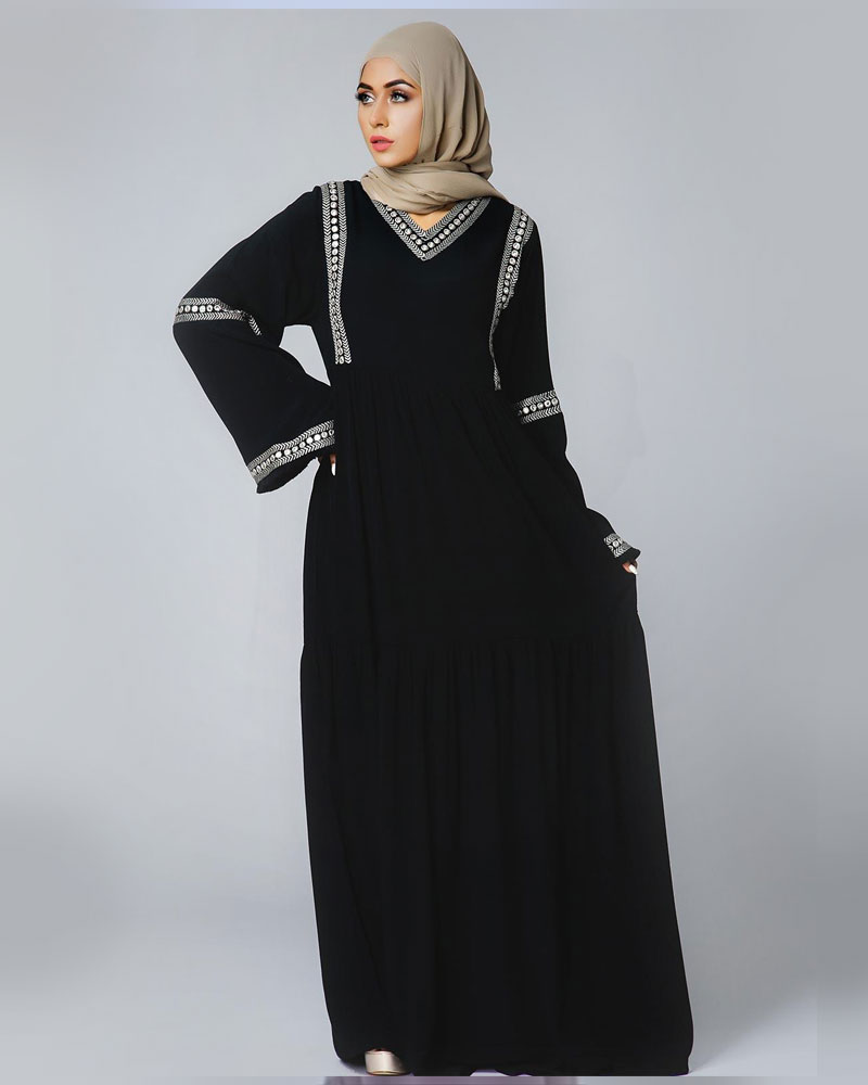BLACK AND BROWN EMBROIDERED ABAYA/ CLOSED